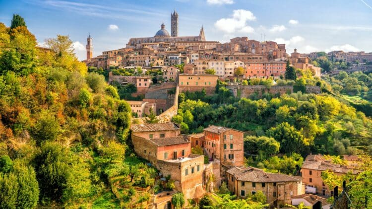 Vous découvrez la célèbre Piazza del Campo, cœur vibrant de la ville, ainsi que le majestueux Duomo de Sienne, chef-d’œuvre de l’architecture gothique.