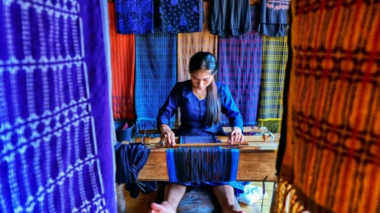 Escale à Sualkuchi, le centre du tissage en Assam, célèbre pour ses étoffes en soie. Découverte des ateliers et possibilité d’achats de saris traditionnels.
