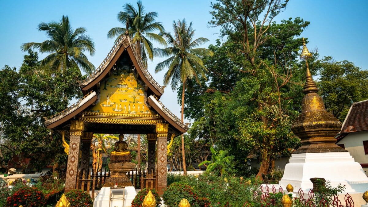 Vous explorez Luang Prabang : le Wat Mai, l’ancien palais royal devenu musée, et le Wat Xieng Thong, joyau de l’architecture bouddhiste.