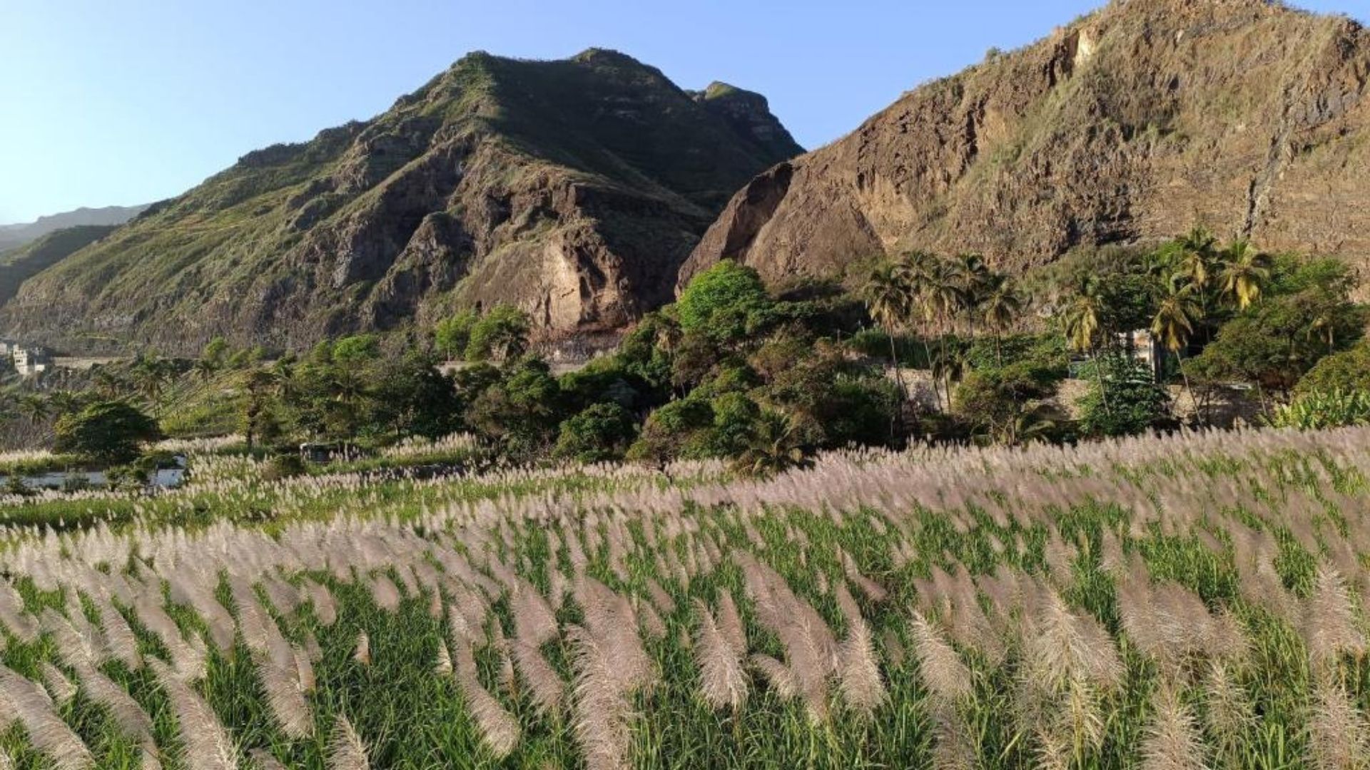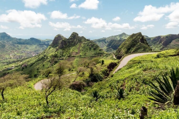 À seulement une heure de traversée depuis Mindelo, Santo Antão dévoile un tout autre visage. L’arrivée à Porto Novo ne laisse rien présager de la richesse naturelle de l’île. Pourtant, en prenant la route pavée qui serpente à travers les montagnes vers Ribeira Grande, le décor se transforme peu à peu. Les reliefs spectaculaires s’ouvrent sur des vallées profondes et verdoyantes, parsemées de cultures tropicales. Manguiers, papayers, canne à sucre et distilleries artisanales de grogue composent un paysage fertile et saisissant, véritable oasis suspendue entre ciel et mer.