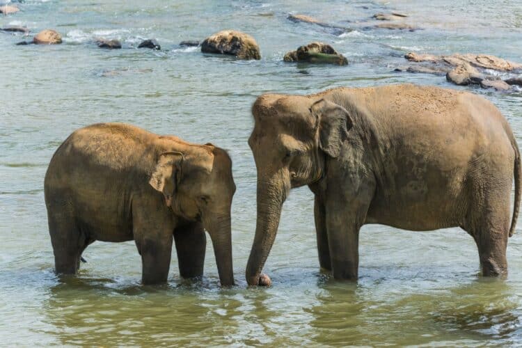En chemin, arrêt à l’orphelinat des éléphants de Pinnawela pour observer le bain et le repas des pachydermes dans la rivière Maha Oya.